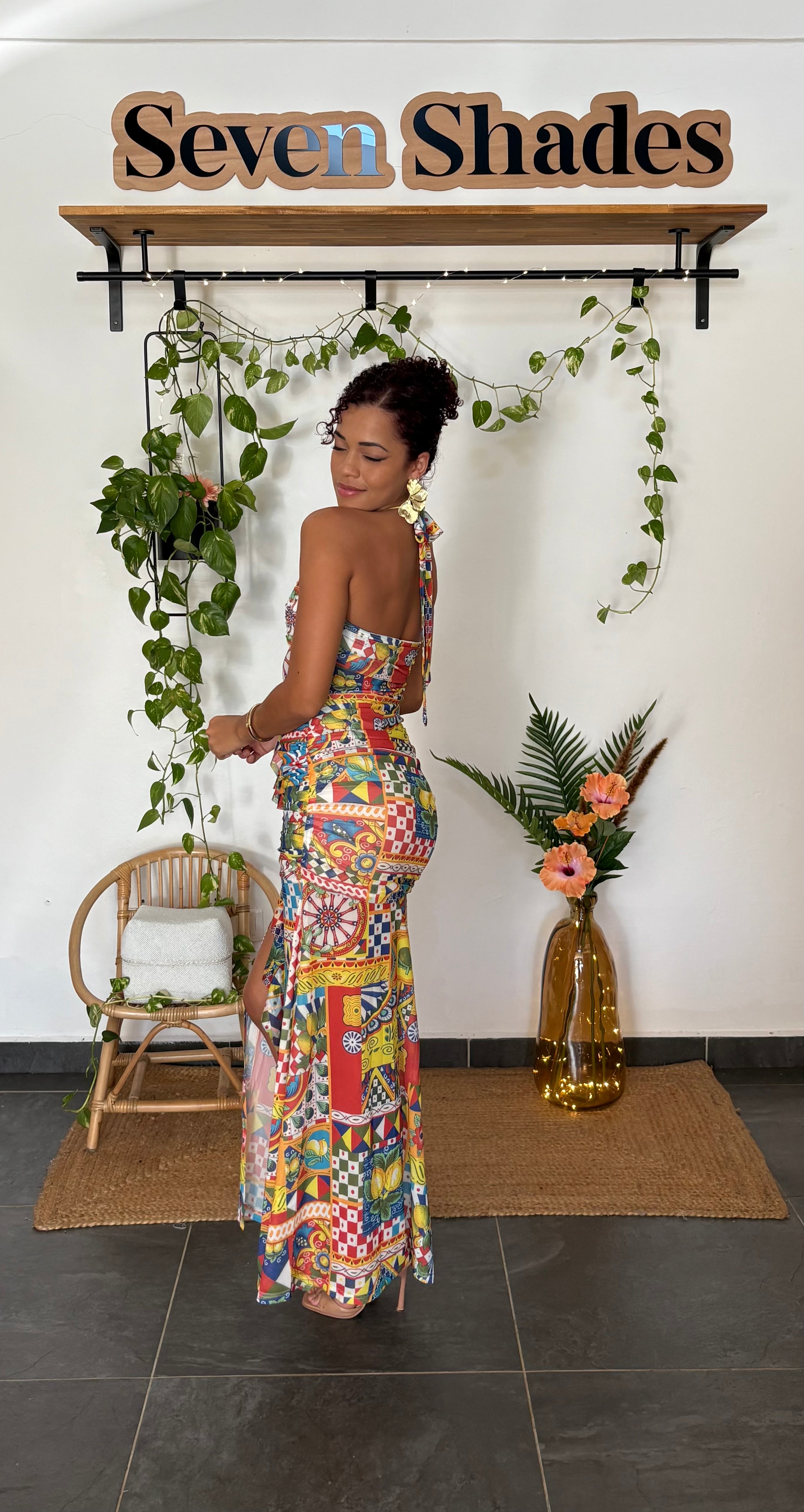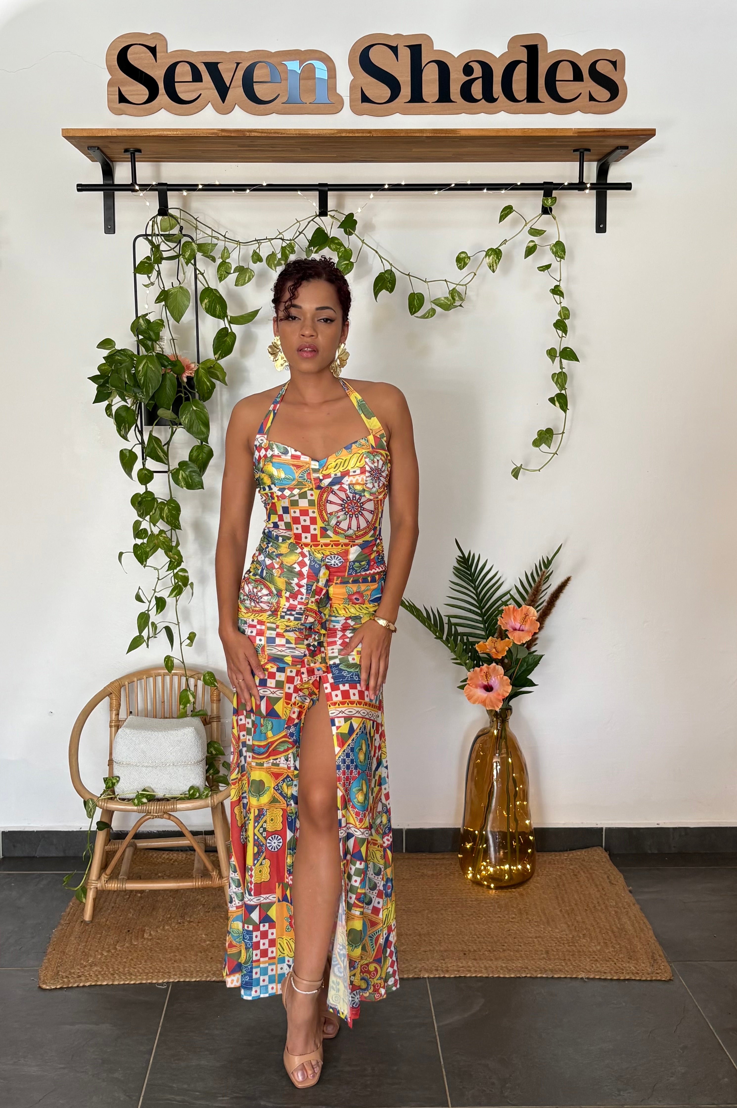 DOLCE, c’est l’élégance tropicale : Sa matière, des tons chaud et colorés comme les Seven Ladies adorent, sa coupe ajustée qui sublime la silhouette. Une robe pour briller naturellement, sans paillettes inutiles avec des motifs comme on les aiment...
