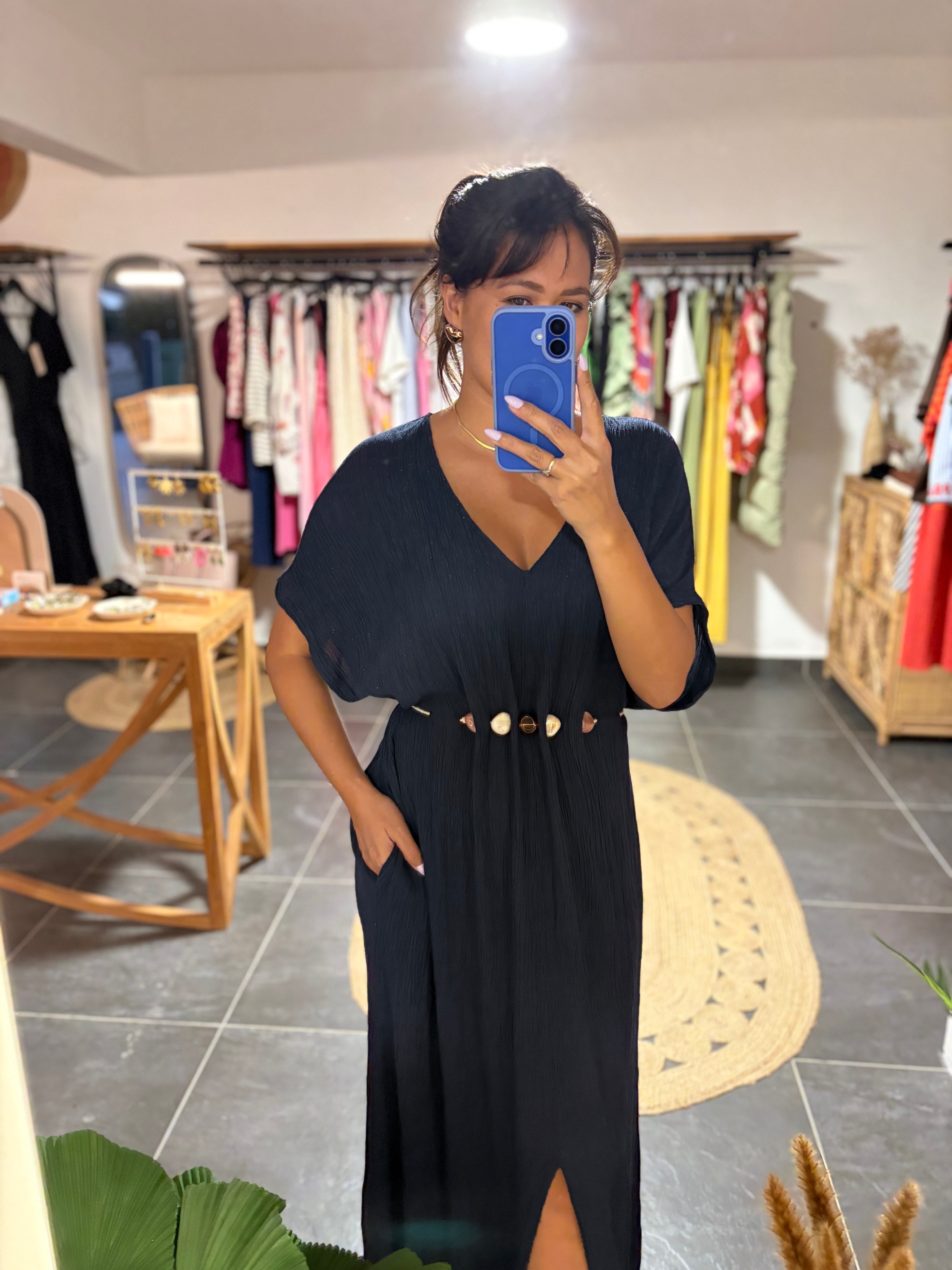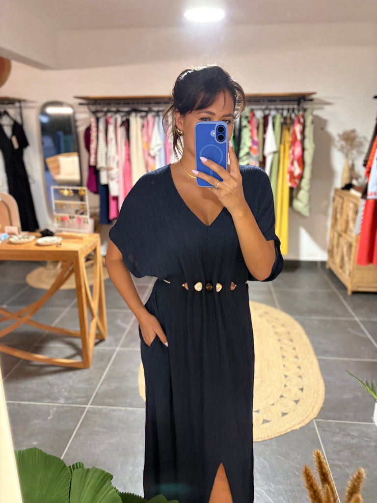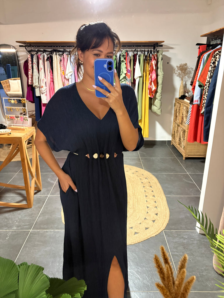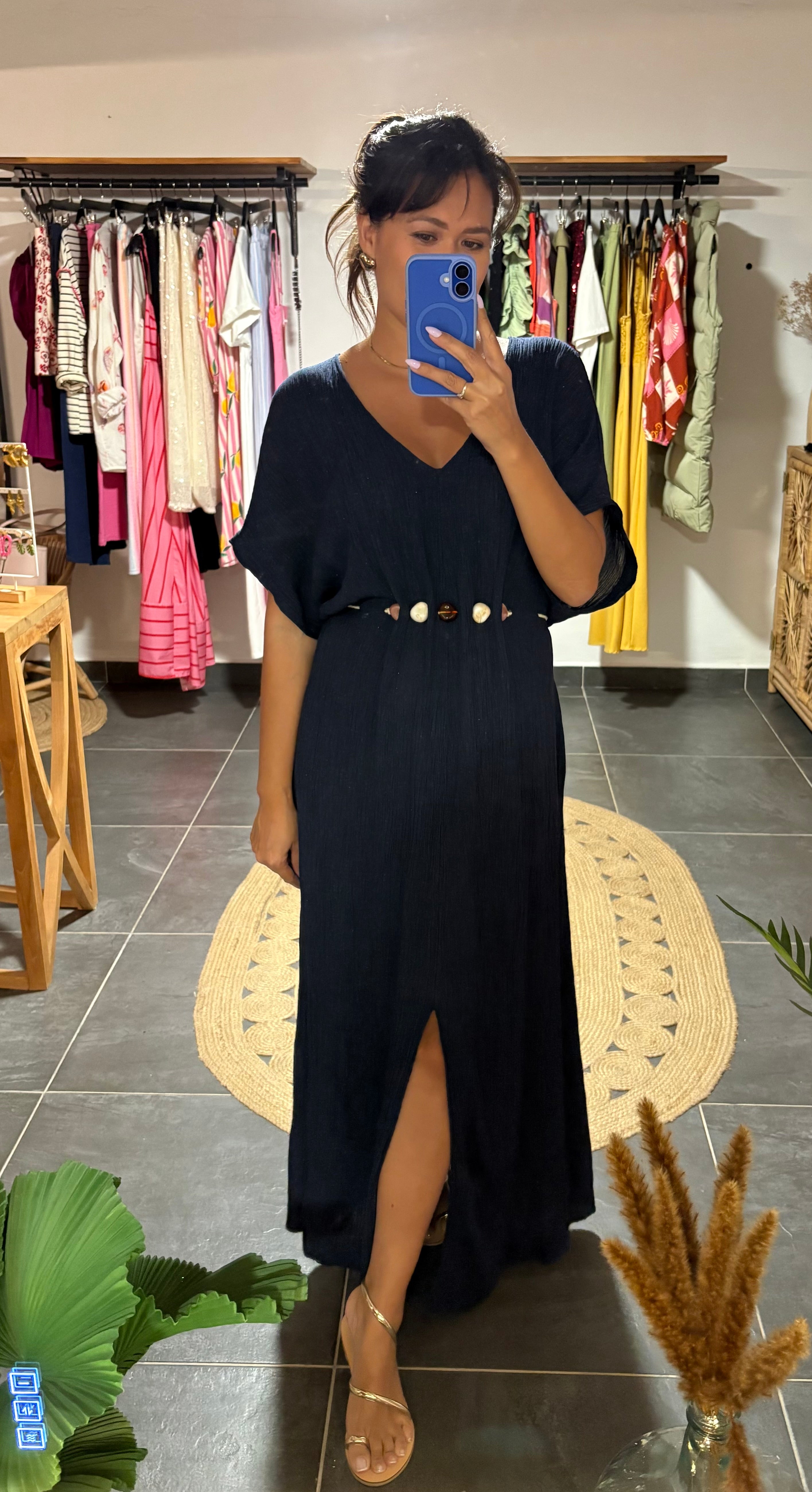 Parfaite pour toutes les tailles (36-48+), cette robe longue bleue nuit ajoutera une touche d'élégance à votre garde-robe.