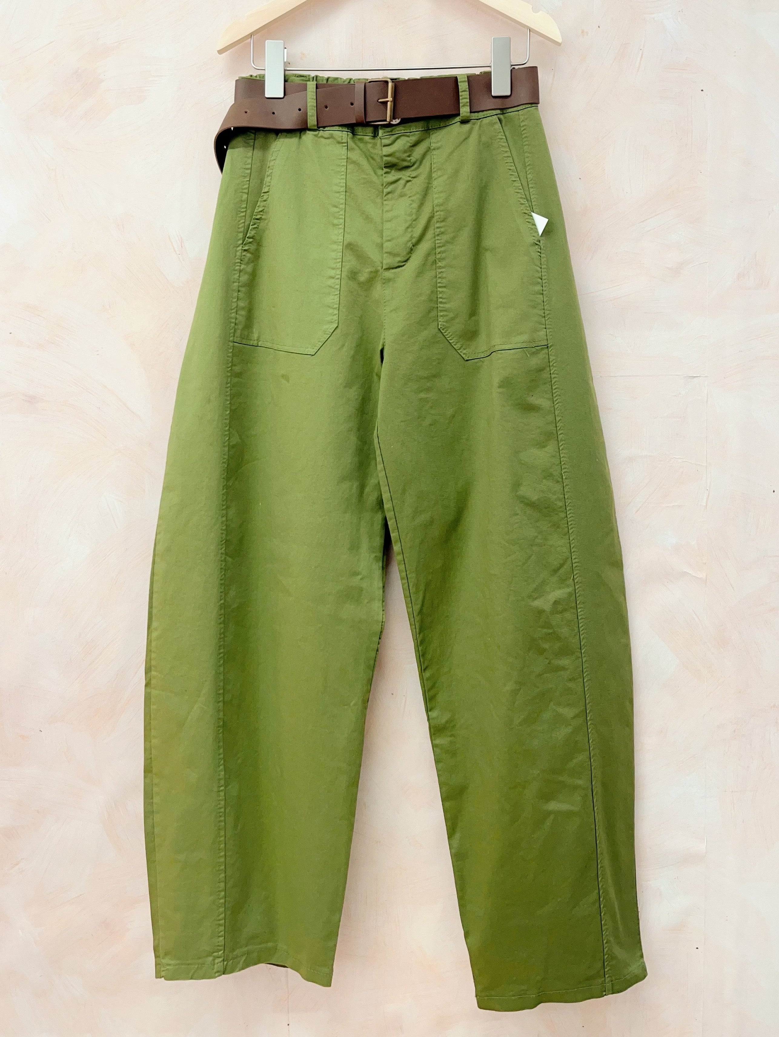 Faites sensation avec le pantalon barrel en vert olive, la couleur tendance qui illuminera votre garde-robe!