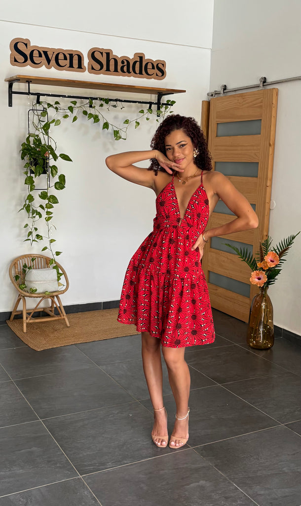 Craquez pour la robe CHRISTELLE, qui capture l'essence festive des tropiques.