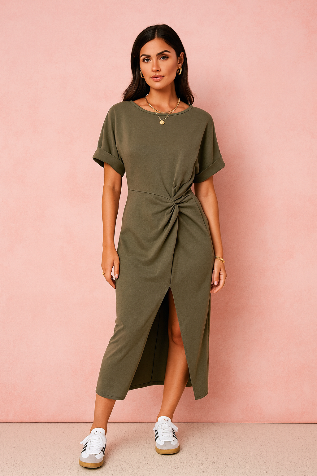 (Re)Découvrez la robe ALOES en coton, disponible maintenant en kaki!