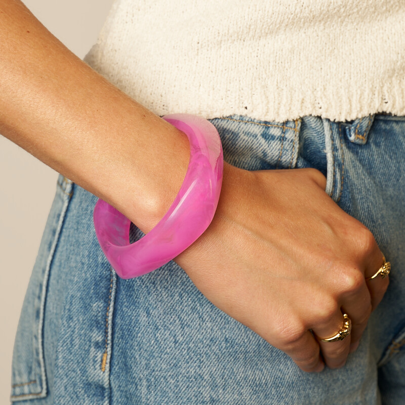 Ce bracelet résine rose et jaune est le choix parfait pour un style tendance et moderne. Les couleurs vibrantes et la résine de qualité supérieure ajoutent une touche de sophistication à votre tenue. Portez-le pour ajouter une touche de couleur et d'énergie à votre journée.