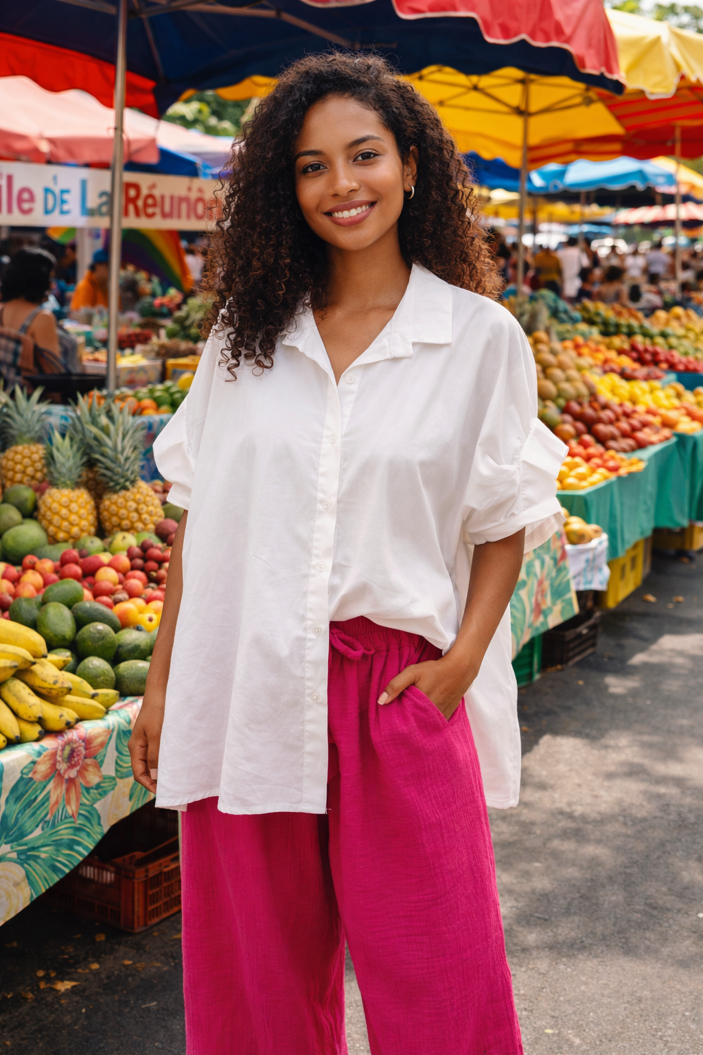 - Sa coupe large et fluide pour un look décontracté